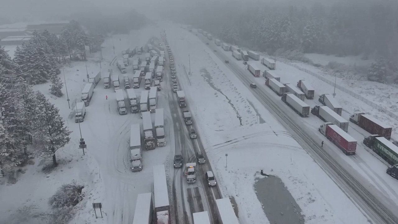 ABD’nin California eyaletine bağlı Truckee kentinde etkili olan yoğun kar yağışı nedeniyle çok sayıda tır ve kamyon mahsur kaldı.