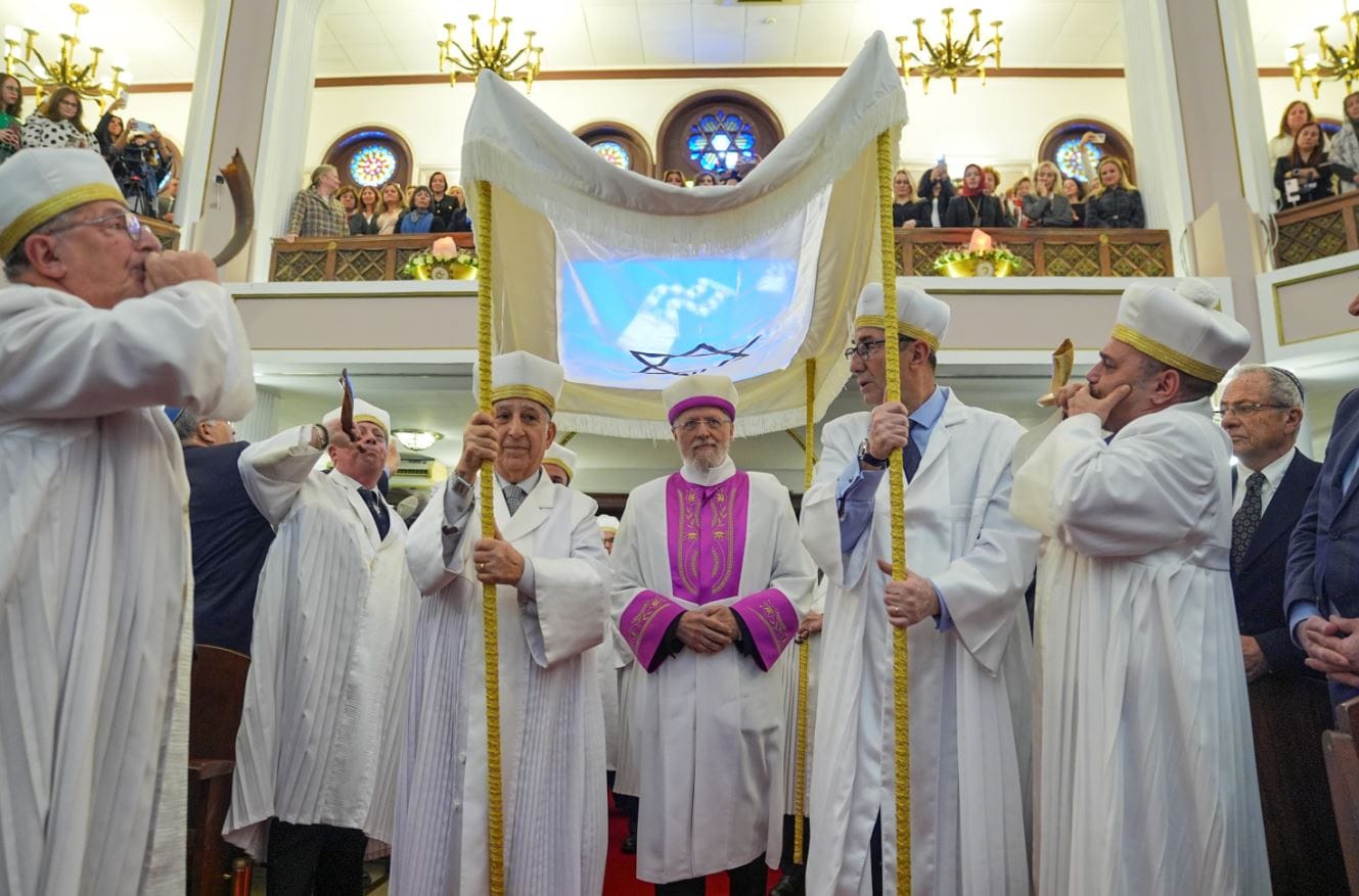 Sivi, hahamlar, dini görevlilerle birlikte boynuzdan yapılan şofar adlı enstrümanları üflerken dini usullere göre sinagoga girdi. Duaların edilmesi, sonrasında çocuk korosunun şarkılar söylemesiyle devam eden törende, Sivi’nin boynuna “10 Emir Takısı” takma seremonisi gerçekleştirildi.