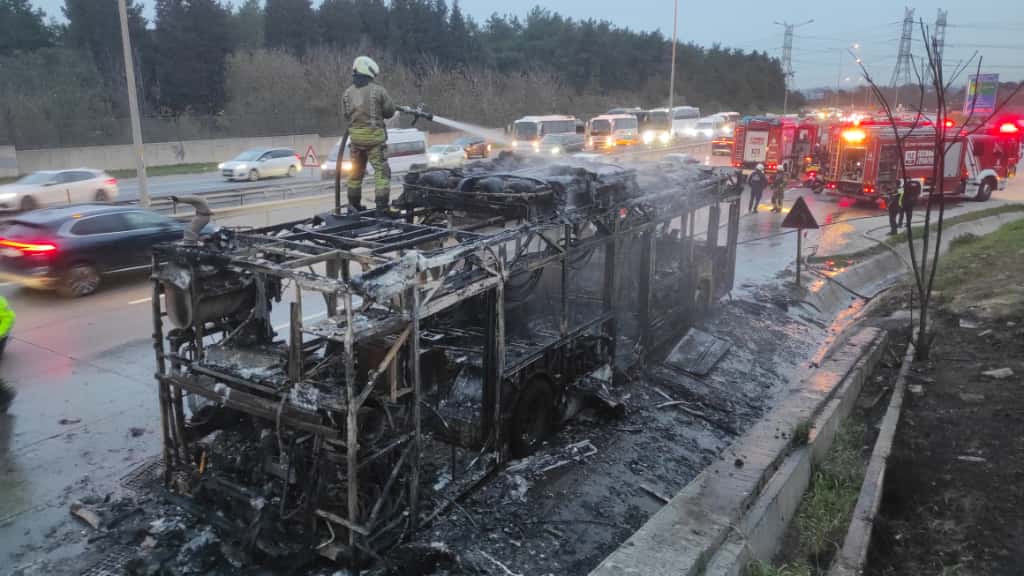 • İETT otobüsü alev topuna döndü! Geriye demir yığını kaldı