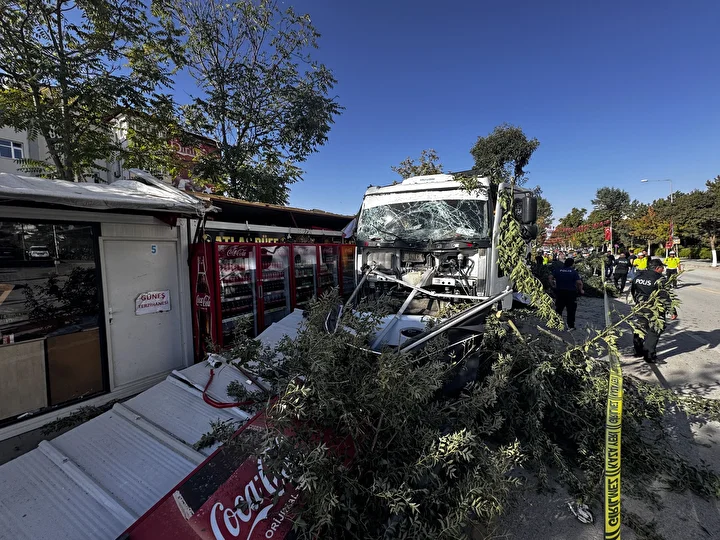 Olay anını kaydeden güvenlik kamerası görüntülerinde, kamyonun konteyner iş yerlerine çarpmadan önce yol kenarındaki ağaçlara çarpması da yer alıyor.